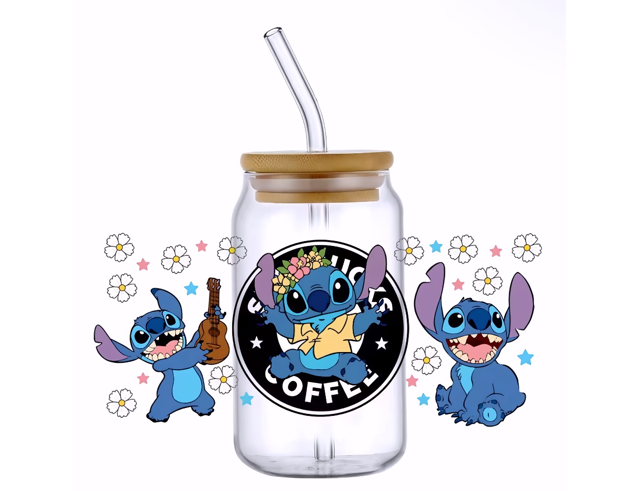 VASO DE VIDRIO CON TAPA 550ML STICH COFFE
